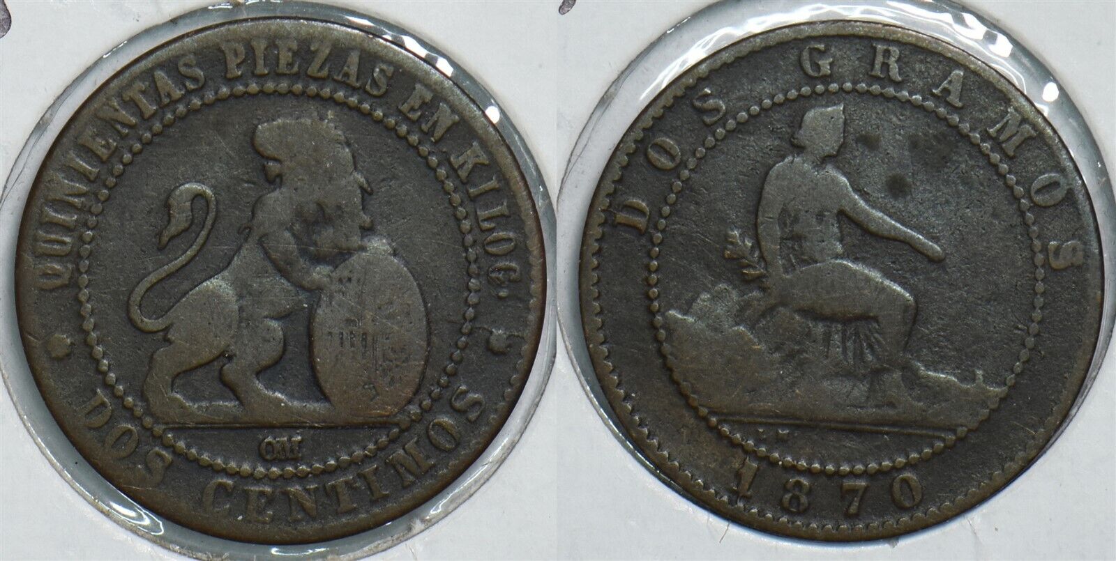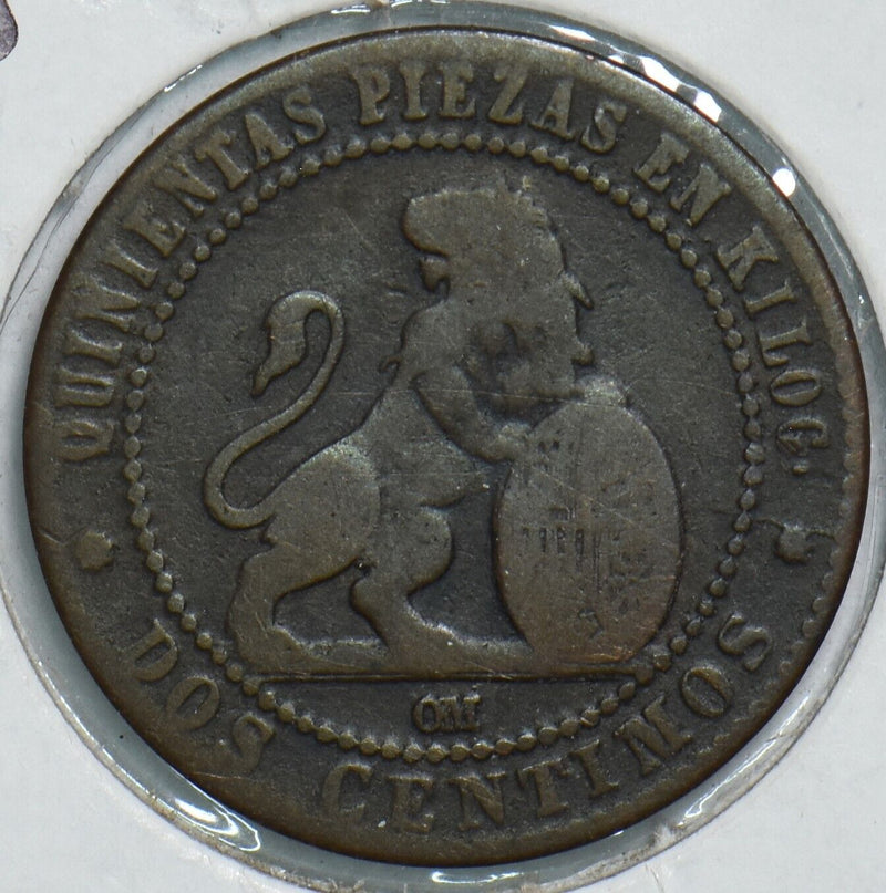 Spain 1870 OM 2 Centimos 153927 combine shipping