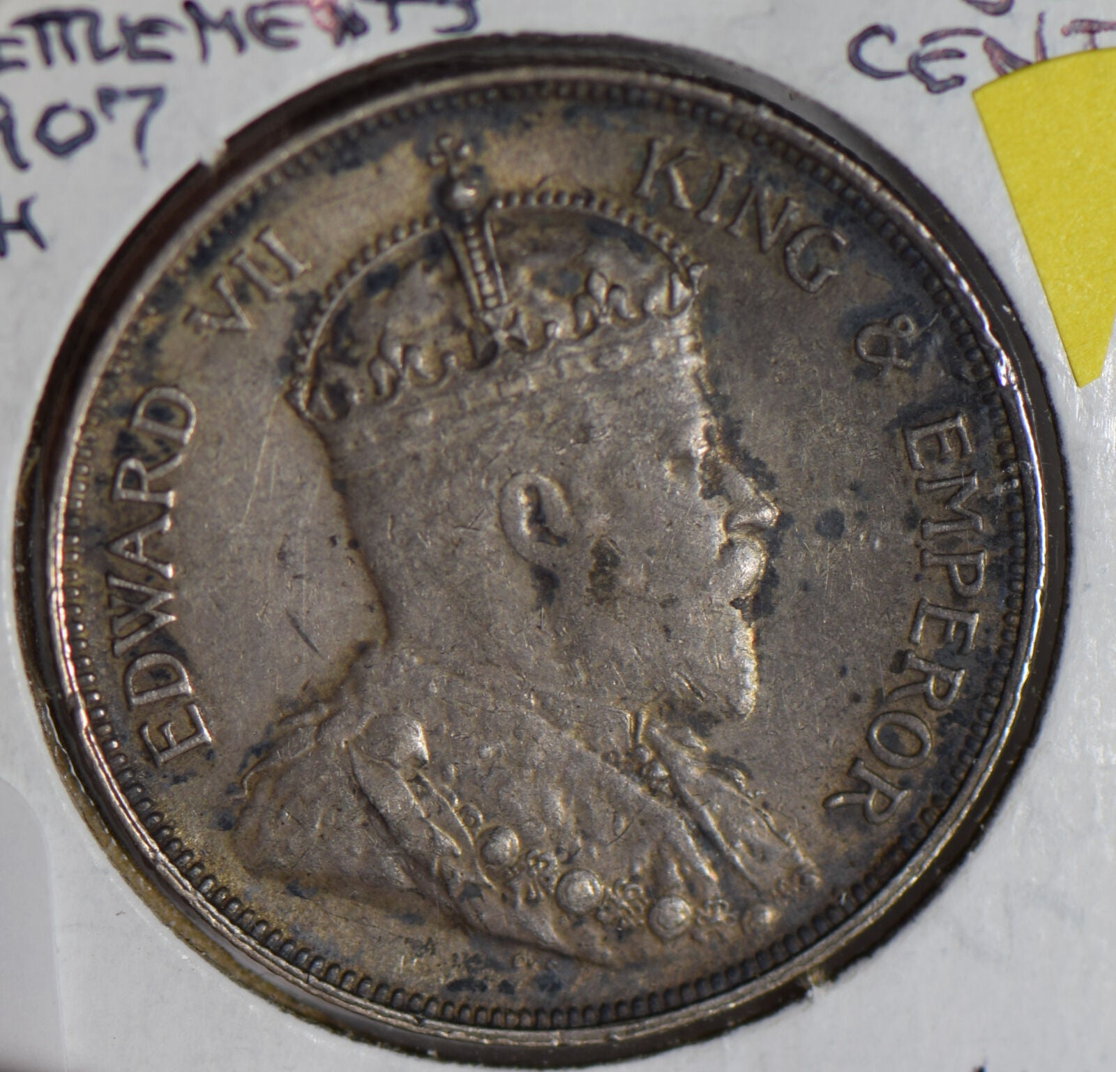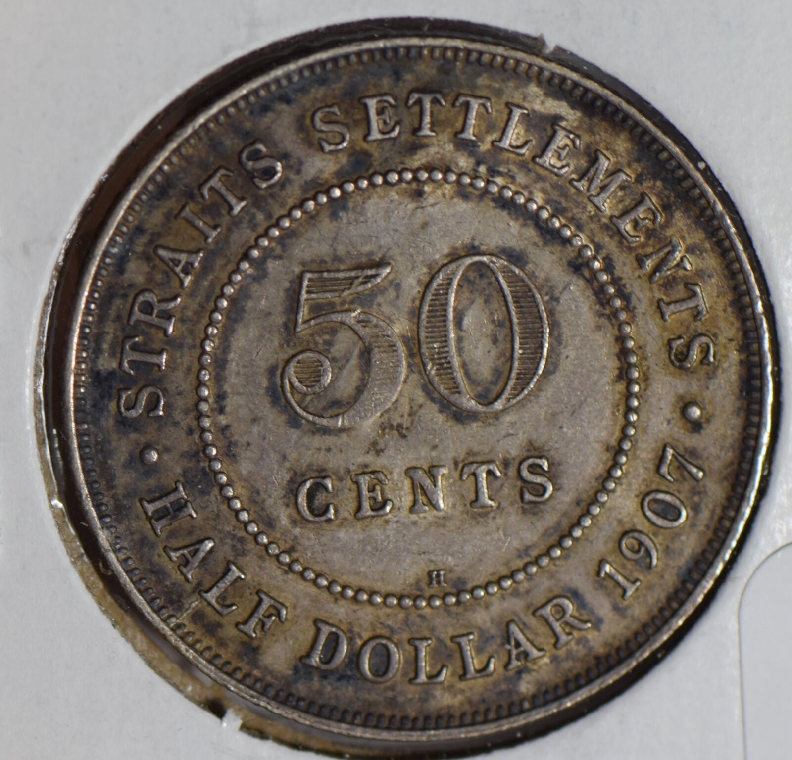 Straits Settlements 1907 H 50 Cents silver luster underneath S0234 combine shipping