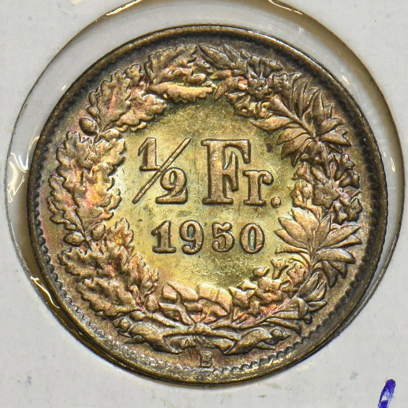 Switzerland 1950 1/2 Franc Choice toned UNC S0331 combine shipping