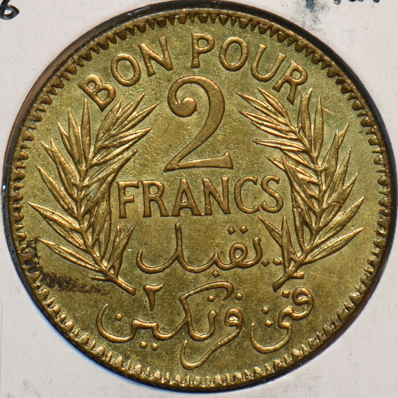 Tunisia 1926 AH1345 2 Francs 294194 combine shipping