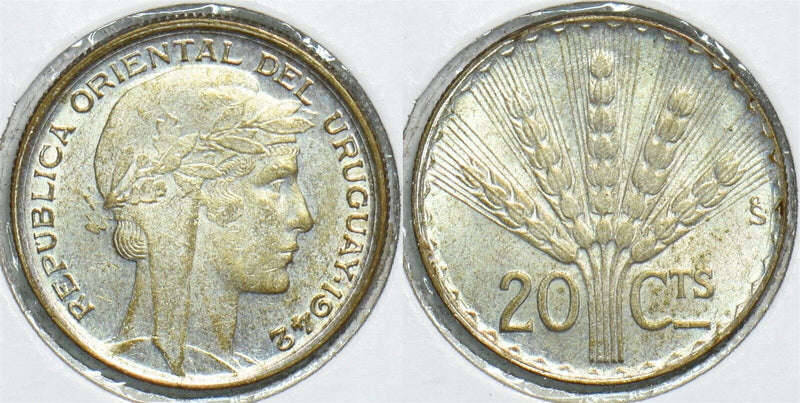 Uruguay 1942 20 Centesimos Choice BU 198502 combine shipping