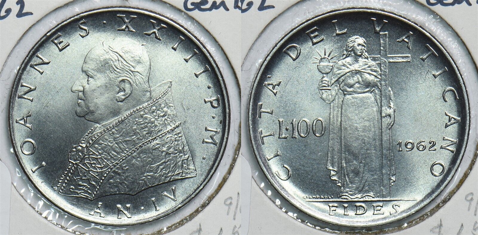 Vatican 1962 AH 1327//4H 100 Lire Gem BU 299122 combine shipping